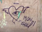 berreta anne - sete17Plus on monte dans les ruelles, plus les couleurs s’affirment, avec en apothéose L’Hymne à l’amour fleuri et coloré d’une des rares street-artites femmes : Kashink, avec son personnage aux yeux multiples caractéristique : un régal de joie et de couleurs pour raviver le souvenir de Piaf.