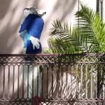 En face, discrètement enlacés sur un balcon ombragé, le couple d’amoureux de Claire Streetart profite de la dolce vita à la sétoise. Côté couleurs, on reste dans le bleu et la marinière, échos de la mer et de ciel.