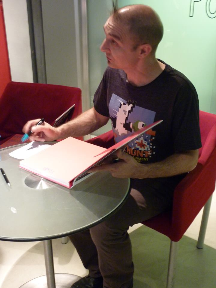 Puis dans un second temps Serial Painter a été présenté au Centre Pompidou, ce samedi 30 mai 2015, à la Librairie Flammarion Centre, en présence de l’artiste. Voici la dédicace qu’il m’a faite, grâce à l’entremise d’Isabelle Monamy 😉