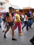 Effectivement, l’État de Coahuila est un des tout premiers de la Fédération du Mexique à avoir reconnu la légalité du Mariage gay, avec Saltillo et Durango. L’homme à la casquette arco-iris rappelle un certain nombre de faits relatifs à l’amélioration de la condition des minorités sexuelles, et présente avec une poupée le lauréat du concours Señor Gay de Torreón. La journée de mobilisation se termine par un show des plus chauds et sensuels, avec quelques créatures débarquées du monde de la nuit.
