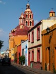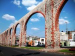 Capitale de l’État de Querétaro, située à environ 2h au nord-est de Ciudad de México, Santiago de Querétaro est tout d’abord célèbre en tant que grande ville coloniale et historique du Mexique, avec ses nombreux dômes, ses clochers d’églises et ses places ombragées. Le centre historique, relativement aéré et peu élevé, s’organise en fonction du tracé des rues perpendiculaires, selon le modèle des villes coloniales issues de la Conquista (la ville fut fondée en 1531). Entièrement pavé, il est de style baroque et classique, et mêle influences espagnoles et françaises. Il est classé au patrimoine mondial de l’Unesco depuis 1996, ainsi que l’aqueduc datant du XVIIe siècle et long de plus d’un km, qui fut en activité jusqu’en 1970. Mais la ville de Querétaro est aussi le cœur de la 10e zone métropolitaine mexicaine, une mégapole en expansion fulgurante : en 2010, celle-ci comptabilisait une population de 1.097.025 habitants, en 2016 elle dépassait déjà les deux millions d’habitants. Le centre historique, en partie piéton et mis en valeur, est donc devenu une petite pièce du puzzle urbain dans cette jeune mégapole.