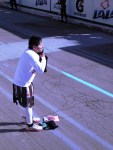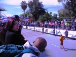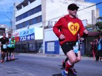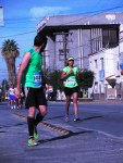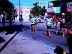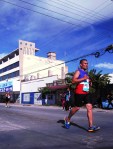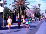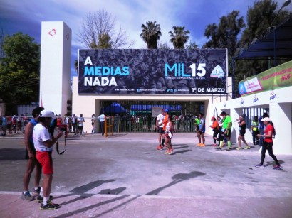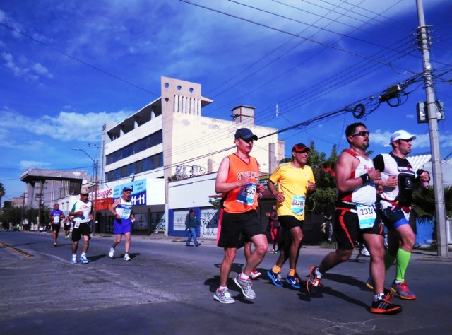 Le soleil était déjà haut lorsque j’aperçu de loin les premières groupes de coureurs, facilement repérables avec leurs casquettes, leurs baskets et leurs lycras jaunes, verts, roses fluo. La circulation avait été bien sûr neutralisée sur le trajet du parcours, ce qui conférait au centre de Torreón une sérénité et un silence particulier, comme si toute la ville était tendue dans cet effort collectif, toute activité annulée, emportée dans le dépassement physique de chaque participant. Je remarquais rapidement la présence de jeunes femmes au corps ferme et tonique, des petits nerveux, des gorditos souriants à l’embonpoint bien visible, quelques excentriques maquillés comme pour Carnaval ou arborant un chapeau de lutin bon marché en velours, et même certains abuelos (grand-pères) enthousiastes, tout dentier dehors. L’Amérique dans toute sa modernité, son positivisme et sa trivialité !