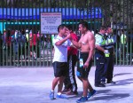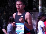 La récolte de portraits s’annonçait intéressante, et je naviguais entre les grappes de curieux, de plus en plus fournies à mesure que je me dirigeais vers le Bosque Venustiano Carranza, un grand parc central que contournaient les coureurs avant de franchir la ligne d’arrivée. L’effort se lisait sur la plupart de leurs visages à l’approche de l’immense arc de ballons bleus, rouges et blanc marquant la fin des 42.195 km de trajet parcourus en larges foulées, la tension des muscles était palpable.