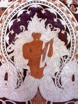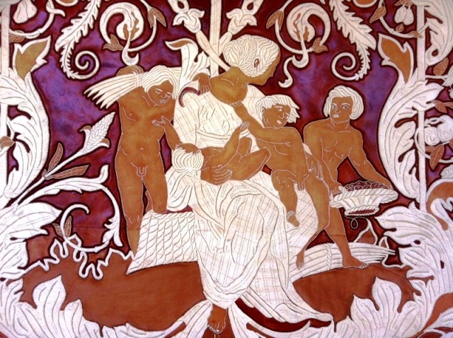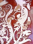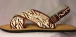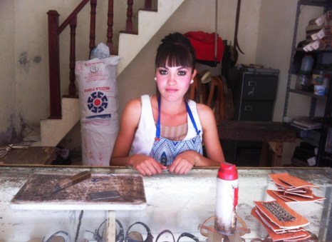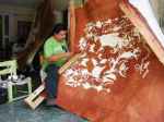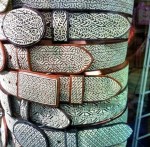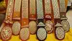 Une fois passée cette première étape de création, le dessin est piqué régulièrement à la main pour permettre ensuite la broderie, qui est la tâche la plus difficile et, pour cette raison, la mieux rétribuée. Puis, à l’aide d’une machine à coudre, le brodeur met la doublure au revers du ceinturon, il redécoupe et fait les finitions. Enfin, un autre artisan ajoute la broche, la boucle et la barrette. Le ceinturon est ainsi prêt à la vente. Avec le cuir restant, on élabore des housses, des broches, des boucles d’oreille.