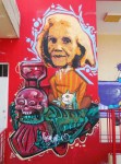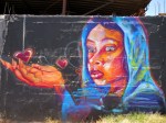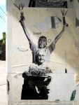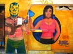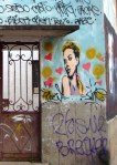 Ce sera ici la rue de l’art urbain, un langage artistique qui met en scène la vie d’aujourd’hui dans un effet miroir, et qui sait si bien dire en montrant. Voici donc une suite de visages cueillis un peu partout dans ce grand pays ; des visages immobiles et inscrits sur les murs, les trottoirs, figés sur des devantures, visages divers et hétéroclites dans leurs traits comme dans la geste artistique. Ici une série de photos en noir et blanc collées régulièrement sur une vitrine à Torreón, là des graffitis à Puebla.à Ciudad Juarez, d’autres ailleurs dont j’ai oublié l’origine…