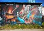 Situé en bord de mer, ce spot bien connu des street-artistes des environs ou de passage, vibrait ce jour-là de toutes les couleurs de ses graffitis. Cet ensemble architectural des années 50, constitué de différents corps disposés entre la plage et la route, est aéré, horizontal et de type fonctionnel. Il peut aussi faire penser à un hôpital désaffecté et faire verser dans le pathos, un espace ouvert aujourd’hui à tous les vents mais abritant encore quelques fantômes. Combien d’existences se seront croisées dans ce bel environnement hygiéniste avec l’horizon azur comme ligne de mire, impression accentuée par l’état d’abandon, les vandalisation et autres destructions du temps. Mais surtout par ces oeuvres criant la vie comme un manifeste, au milieu d’imaginaires odeurs d’éther, de souvenirs de corps et d’esprits enfermés dans des chambres, soignés, tranquilisés. Triste passé progressivement nettoyé par par les embrunts iodé et les dunes, mémoire pesante désintégrée par le soleil, la chaleur et le vent.