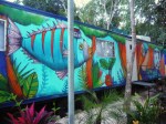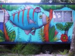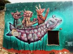 De nombreuses œuvres de différentes factures décorent murs de parpaings, façades bétonnées ou cabanes en bois traditionnelles, et s’inspirent naturellement de la faune et flore locale, fil conducteur du diaporama ci-dessous, comme des formes artistiques ancestrales. C’est en suant à grosse gouttes sur mon vélo de location que j’ai fait ces photos, qui j’espère vous apporteront un courant d’air chaud et chargé d’humidité, les saveurs sucrées des fruits locaux délicieux et les chants d’oiseaux tropicaux. Comme une plongée dans les eaux cristallines des publicités des tours operator, comme un rêve de paradis qui inscrit son espace-temps dans notre monde actuel, mi-réel, mi-virtuel.