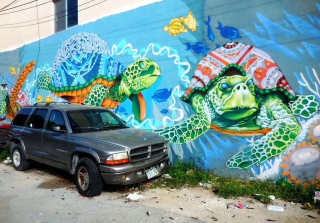 Petit clin d’oeil à l’actualité politique mexicaine : parmi les nombreuses fresques mettant en scène des tortugas, la mascotte de la région, l’une se retrouve affublée de la tête d’AMLO (Andrés Manuel López Obrador, leader du parti Morena) en passe de devenir le prochain président du Mexique.