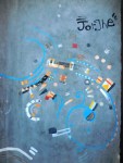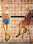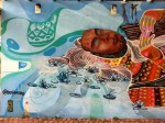Différents sujets sont traités : des masques mayas revisités, des héros mythologiques, de charmantes maisonnettes décorées, un coeur en hommage à Keith Haring, des formes abstraites et aériennes inspirées par Kandinsky, des personnages endormis ou partis dans un rêve mystique, des humains à tête de poisson tout à fait à leur aise dans un bar branché…