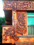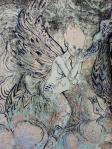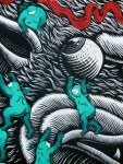 Et pour commencer, un majestueux Ganesh lévitant au dessus du saṃsāra (ci-dessus), le cycle des réincarnation – ou encore la réalité commune à nous tous, celle que chacun essaie de transcender à sa manière. Improbable métissage des cultures bouddhistes et précolombiennes : l’inframonde est représenté par le jaguar, qui au Mexique conduisait le voyageur dans son parcours initiatique de l’obscurité et des forces telluriques vers la vérité, les révélations divines ou humaines et la lumière du soleil.