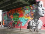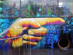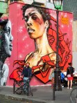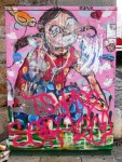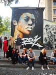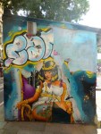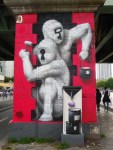 Et des oeuvres d’autres artistes que voici donc dans le diaporama qui suit. J’ai bien aimé ces mystérieux personnages gris, angelots grassouillets nés du ciment et qui semblent protéger le quartier de quelque catastrophe futuriste. Ou de la grisaille dans les coeurs. Mais c’est en couleurs que je fis le parcours tandis que l’équipe de France était en train de se qualifier, donc ambiance plutôt buena onda.