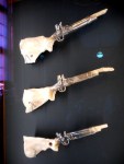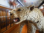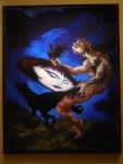 La chasse y est abordée certes sous un aspect scientifique, prétexte à un inventaire : techniques, habitudes des animaux, instruments et produits de la chasse. Mais aussi représentation de la faune et de la chasse au cours des âges, significations historiques, voire ésotériques. Les textes des cartels explicatifs dans chaque salle sont finement ouvragés, précieux et instructifs. Cependant on a cette écrasante sensation d’arriver avant le banquet ou après les agapes, dans un décor qui attend quelque action d’éclat. Y aurait-il Il y a un cadavre sous le tapis ? Une révélation, des expériences en cours aux limites de la décence. Envie de petits meurtres entre amis ? Ou pire encore, d’un coït incestueux entre un serpent et une langouste, d’un duel entre une chouette et un loup. Que de lourds rideaux damassés tombent, que nos derniers voiles de pudeur s’envolent. Glissement de sens, glissements de chairs. Le roman moderne peut de nouveau s’écrire, l’espace s’érotiser.