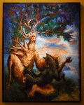« Peintre, graveur et sculpteur, Gérard Garouste (né en 1946) s’inspire souvent des grands textes de références. La Bible, le Talmud ou, dans un registre plus littéraire, le Don Quichotte de Cervantés, servent d’alibi â ses complexes jeux plastiques où l’audace des forme et des couleurs s’affranchit des contraintes de la vraisemblance.
