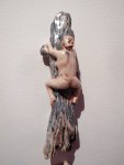 « Formée à la Rhode Island School of Design où elle découvre une multitude de supports, Laurie Karp expérimente diverses techniques à la sortie de ses études allant de la céramique à la peinture, en passant par la vidéo. Ayant le goût des hybridations dans ses formes autant que dans les techniques de création, elle mixe fréquemment ces modes d’expression au sein d’une même œuvre. Ainsi, imbriquant divers types d’images, elle peut combiner ses formes sculpturales avec des dessins ou vidéo. Dans le même esprit, elle associe image et textile : utilisant la technique traditionnelle de la broderie, elle crée des images numériques dont elle s’applique à suggérer les pixels à l’aiguille. Mais c’est à la céramique qu’elle revient le plus volontiers pour donner vie à un monde étrangement organique. Utilisant la richesse d’effet que permet l’émail, elle s’attache à évoquer la diversité des textures et des matières. Ce sont souvent des fragments anatomiques, lambeaux ou viscères, petites formes charnelles qui paraissent destinés à un festin barbare. La cruauté n’est jamais loin.
