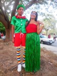 On pouvait identifier quelques thèmes tels qu’Alice au pays des Merveilles, les Dieux de l’Olympe, le Western, et bien sûr le folklore de Noël, largement colonisé par la culture consumériste étasunienne avec le fameux costume rouge du Santa Klaus (Père Noël) Coca Cola omniprésent… Signe des temps, on pouvait même voir un gilet vert (dans un costume d’avion, voir la photo ci-dessus) à défaut de Gilet jaunes ! Voici donc une série de clichés pris par les soins du mime Marceau, accessoirement prof de FLE et rédacteur de ce blog, ainsi que par Isabel Ramírez, responsable du département de la gestion académique de la UMAR.