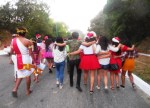 La Umarela s’incrit dans les festivités mexicaines de la Navidad (Noël), entre la fête de la Virgen de Guadalupe le 12 décembre et les autres dates du calendrier catholique de fin d’année. Les participants, des étudiants et des étudiantes, du personnel administratif plus quelques professeur(e)s dont votre serviteur, se sont réunis légèrement en contrebas de la sortie de la UMAR, sur le parking d’une station de gaz naturel, pour rejoindre le centre-ville de La Crucecita. Ce centre urbain, touristique et commerçant qui partie, avec d’autres zones disparates de la zone comme Santa Maria, Tangolunda, de ce qu’on appelle communément Bahias de Huatulco (les baies de Huatulco). Une joyeuse troupe hétéroclite et barriolée, aux tenues sophistiquées ou déguisée parfois de bric et de broc, composée de lutins sexy et de pin-up de Noël, s’est coulée dans le flux de la fiesta, s’est laissé emporter par la descente du grand boulevard Chahue, avec l’horizon du Pacifique en ligne de mire azur.