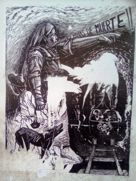 En faisant une rapide boucle matinale, avec mon téléphone portable en guise d’appareil photo, j’ai pu cependant récolter une douzaine de clichés intéressants, des œuvres parfois dégradées dont cette surprenante Liberté. Dans le même courant contestataire des Gilets jaunes, les artistes et militants de Oaxaca amènent au centre du débat public des sujets peu glorieux de la République mexicaine. Ainsi cette gravure ci-dessus dénonçant les disparitions et enlèvements d’enfants, « Nous n’oublions pas, nous ne pardonons pas ! » , ou d’autres œuvres sur le thème du féminicide ou de l’exploitation minière, qui détruit paysages et écosystèmes et déplace ou abîme les populations villageoises. C’est certain, ça fait un peu tâche dans le centre-ville touristique si soigné et entretenu !