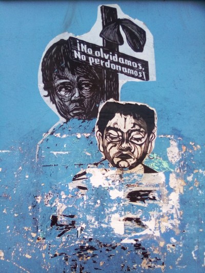 De passage dans la capitale de Oaxaca, cet l’État de l’extrême sud-ouest du Mexique, je cherchais une magnifique gravure en noir et blanc vue une semaine plus tôt, représentant un garçon poing levé de profil, collé sur une façade peinte en un de ces ocres intenses dont les Mexicains ont le secret. Mais je ne le trouvais point, tant les œuvres murales vont et viennent dans cette ville très animée et populaire, mais aussi soucieuse de son patrimoine historique. Les affichages sauvages sont souvent déchirés du bout du doigt ou décollés entièrement s’ils sont effectués sur des bâtiments emblématiques.