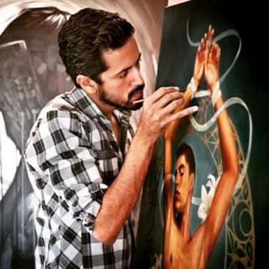 C’est ainsi qu’un tableau de petite dimension, La Revolución (« La Révolution » ci-dessus), peint par Fabián Chairez (peignant une autre de ses oeuvres ci-contre), a défrayé la chronique et porté le scandale depuis ce centre culturel institutionnel vers toutes les strates de la société mexicaine. Depuis l’inauguration de l’exposition il y a un mois, Le Palacio de Bellas Artes s’est rempli de visiteurs et curieux venus voir de leurs propres yeux cette œuvre à très forte connotation homo-érotique, qui montre un Emiliano Zapata nu, de dos, en talons et chapeau rose, monté sur un cheval blanc à la fois délicat et à la virilité bien affirmée… Une féminisation de Zapata qui ne laisse pas indifférent, loin, de là, surtout dans une exposition très officielle. Les reproductions de ce tableau ont enflammé les réseaux sociaux et fait le tour de toutes les rédactions ici, suscitant même des détournements par de nombreux artistes, qui se sont ainsi mobilisés en soutien à la cause LGBT, et ont (des)habillé Emiliano Zapata selon certains de leurs fantasmes, dans une constellation visuelle gay qui va de la Jota (la folle) au Queer, en passant par le bear vêtu de cuir.