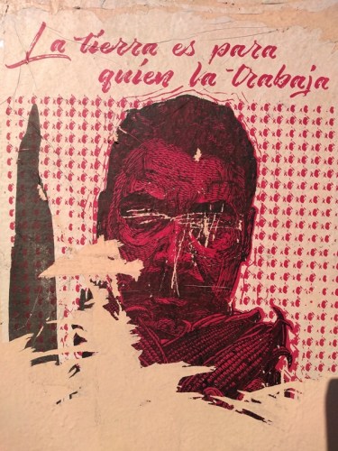« La tierra es para quien la trabaja. » (la terre est à celui qui la travaille). La polémique a suscité aussi du défoulement et des détournements de slogans comme celui-ci. Cet exemple « “La verga es de quien la trabaja.” qui signifie trivialement la bite est à celui qui la travaille.