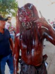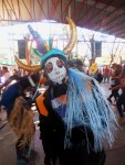 Mais ce n’est pas l’objet principal de cette publication. Je vous emmène ici en images à San Martín Tilcajete pour participer au troisième et dernier jour de carnaval de cette année 2020, qui fut comme chaque année dans ce village une débauche de créatures cornues et bruyantes et l’occasion d’une belle borachera collective et dansante, une bonne fête arrosée comme il se doit au mezcal et à la bière !! Nous sommes partis avec deux amies pour nous jeter dans cette grande vague festive à corps perdus parmi des créatures affublés de masques et de cloches, cornus et à demi-nus, le corps et le visage enduit d’huile de moteur, noire, brillante et provoquante. Et revenus complètements noircis des pieds à la tête par la promiscuité de ces diables donnant des embrassades !