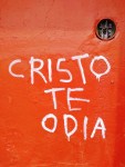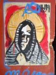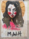 Ces derniers mois se sont multipliés dans les rues de Oaxaca, des portraits peints à la gouache sur petit format, collés sur les murs des immeubles catalogués et les façades multicolores du centre-ville historique. Chaque portrait, qui semble inspiré par un personnage réel, est entouré d’une auréole lui conférant une forme de sainteté byzantine et d’éternité dramatique, inspirée des Symbolistes de la fin du XIXe siècle. Ces gouaches aux traits de pinceau vigoureux sont signés MHW, parfois Memo ; mais une recherche sur la Toile n’a pas permis d’en savoir plus sur cet artiste urbain. On peut au minimum constater que MHW est particulièrement inspiré par les modèles féminins, et avancer que le portrait masculin ci-dessous est possiblement un autoportrait.