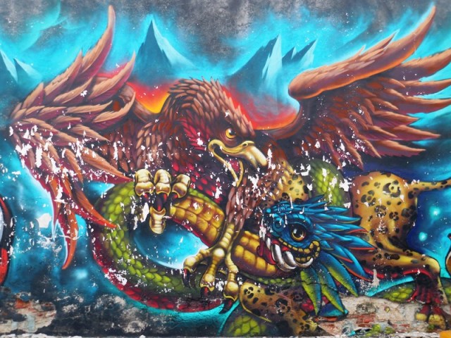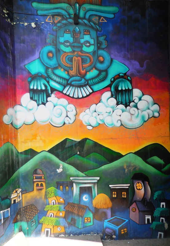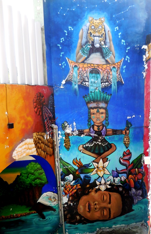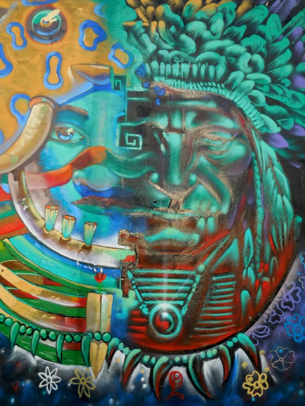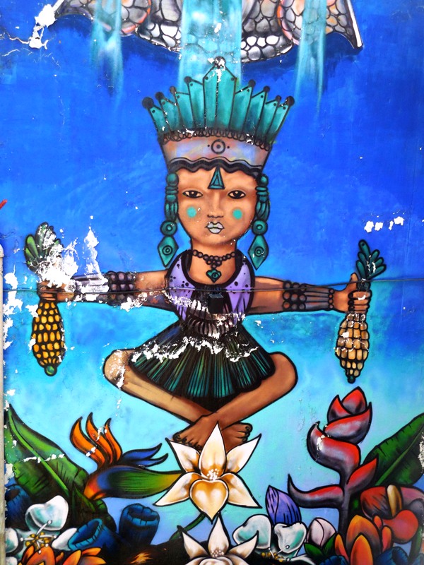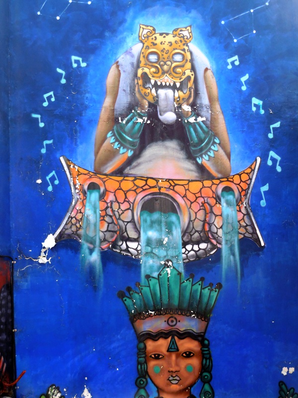 On reconnait les figures de Maria Sabina, Benito Juarez, Martin Luther-King (fresque du passage souterrain pour aller à l’Observatoire du Fortín) et les mythes et divinités précolombiens revisités : Tlaloc, dieu « à lunettes »de la pluie, des eaux célestes et des tremblements de terre ; le Jaguar, gardien et guide du monde souterrain, des forces telluriques, de l’inconscient et de l’intuition ; Ève-tentatrice et le serpent-connaissance pour l’influence judéo-chrétienne venue d’Espagne.