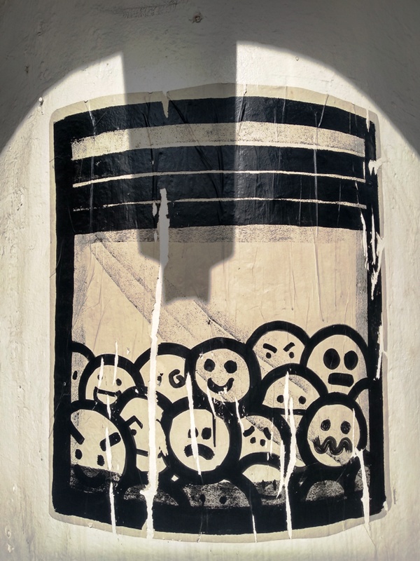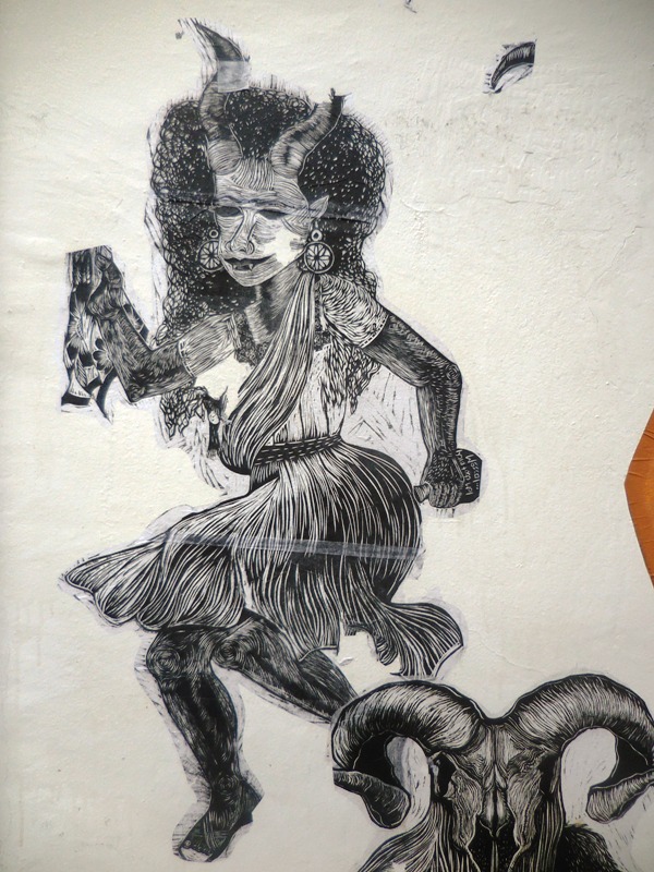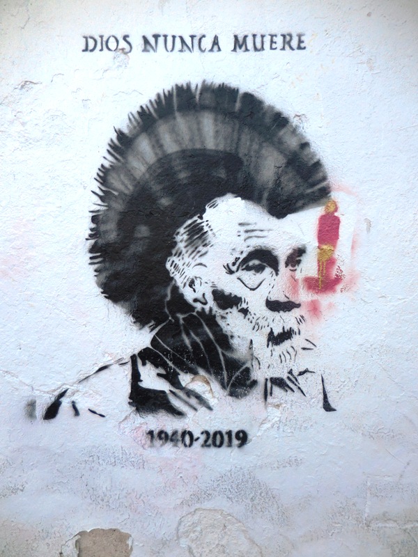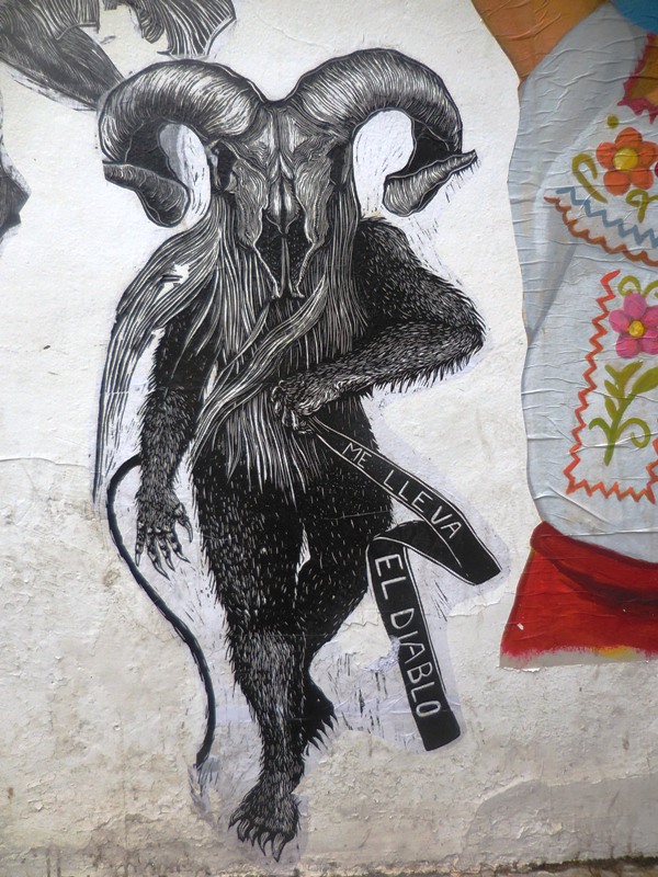 La tonalité obscure des premières oeuvres du diaporama sont issues d’un collage mosaïque situé en face de Santo Domingo. Beaucoup de diables et diablesses, peut-être parce que depuis mars, nous ne sommes pas tout à fait sortis de la période de carnaval-Covid19…
