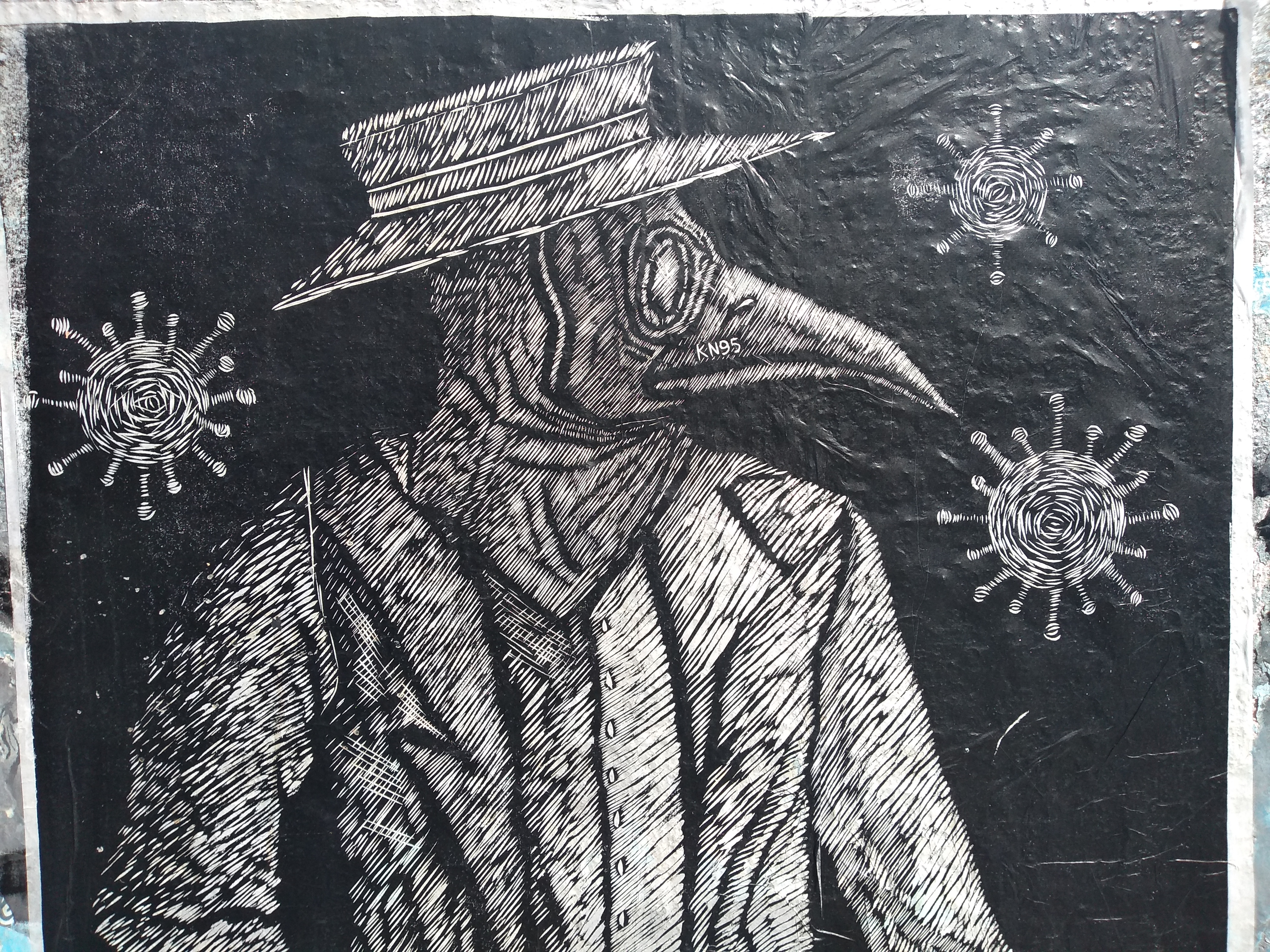 Les visages s’uniformisent, les sourcils se froncent presque tous automatiquement, chaque voisin pourrait être une menace mortelle si on ne s’écoutait plus du tout les uns les autres, si on ne se parlait plus que par écrans interposés. Du moins si on écoutait que nos angoisses les plus ancestrales de proies et de prédateurs. Pendant que les moulins à parole autorisée sont bloqués sur le décompte des cas positifs et fait évoluer le terme Coronavirus, Covid-19, SARS-SaV-2, le Covid, la Covid qui en profite pour subrepticement changer de sexe en français. Tous fous, tous et toutes co-vidés.