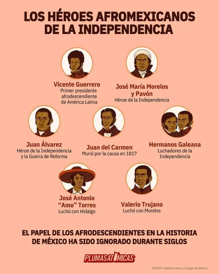 C’est grâce à la lutte pour l’Indépendance, entreprise par José María Morelos (afro-descendant) et Miguel Hidalgo, que se déclare la fin de l’esclavage au Mexique, officiellement en 1810.