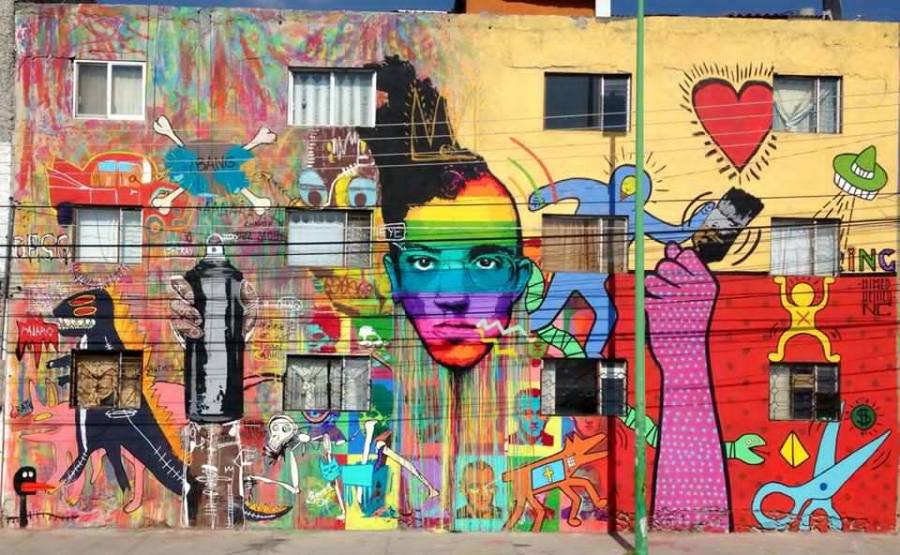 Grande fresque murale d’après et avec les portraits de Jean-Michel Basquiat et Keith Haring, par Himed & Rayben
