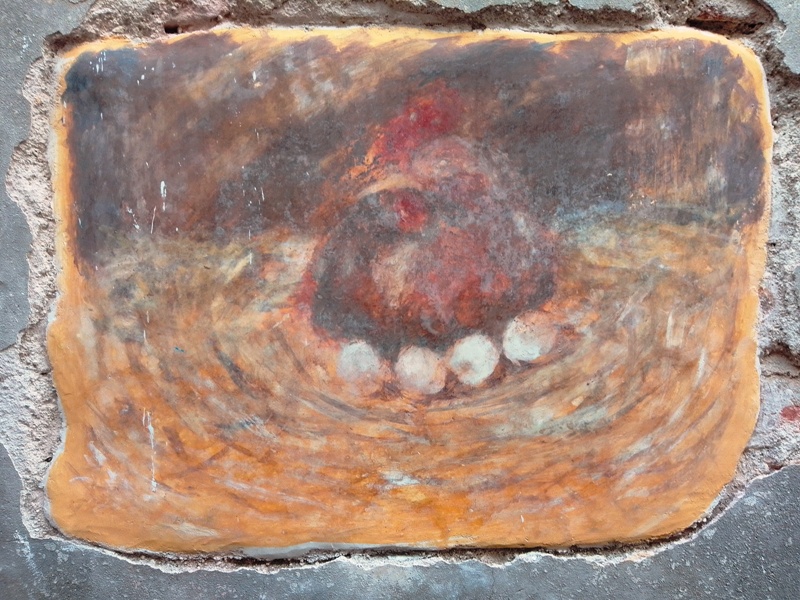 L’utilisation de matériaux naturels locaux que nécessite la fresque, et la tradition préhispanique, un héritage ancestral que je veux transmettre. C’est une technique respectueuse de l’environnement. On peut la qualifier d’art durable. Même les oiseaux viennent ici dans cette cour pour boire de l’eau de chaux. Tout est recyclé dans l’espace.
