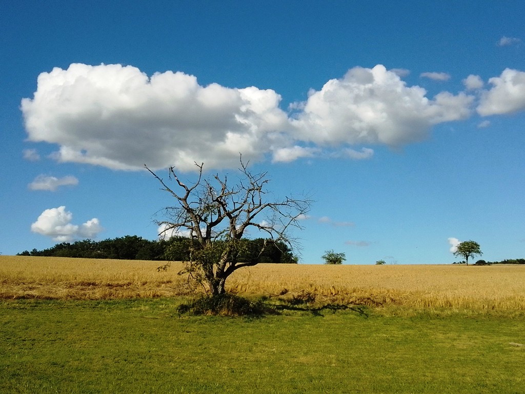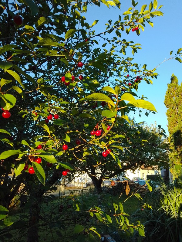 Le régal d’une fondue savoyarde dans le jardin en plein été, les abeilles et les papillons qui s’accrochent en butinant au panache de fleurs des champs posé sur la table. Une guêpe goutte l’eau de vie de mirabelles dans le verre à liqueur. Celui-ci est presque vide et son cul épais réfracte des objets indistincts alentour. Ou est-ce de la poire? Yvonne se donne deux fois plus de mal depuis que Jean a été opéré du cœur et n’a pas encore récupéré. Ils ont chacun un assortiment de médicaments multicolores à prendre suite à leurs opérations cardiaques – Yvonne il y a déjà 4 ans, Jean cette année – comme un rituel du matin et du soir, parfois délaissé par lassitude. Le jardin potager est encore beau cette année, tout agrémenté de fleurs, mais les arbres fruitiers sont laissés à l’abandon aux mousses et salpêtres. On n’a plus toute la force pour entretenir la maison, intérieurs et extérieurs. Déjà habiter une maison, l’entretenir, c’est un effort. On sait qu’on ne sera pas toujours ici, au milieu des objets kitsch de la salle à manger, ou sous la pergola, bien rangés autour de coupes de champagne tandis que bruisse la nature tout autour et froufroute la guirlande mexicaine de papel picado au dessus de nos têtes. Mais là, on a une bonne occasion, nos retrouvailles depuis 4 ans ! Et puis l’été qui partout chante la vie, les odeurs des champs de blé et de maïs couverts de rosée à l’aurore, les cerises cueillies à même les arbres comme on chaparderait des étoiles sanguines. On en voudra toujours et encore, du clafouti.