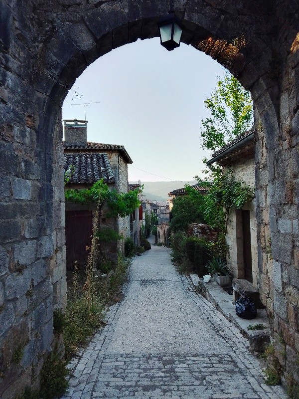 Après la croisade, le village connut un grand essor au Moyen Âge car il se trouve sur le chemin des pèlerins de Saint-Jacques-de-Compostelle. La majorité des maisons ont été construites entre le XIVe et le XVIe siècle, essentiellement en pierre, mais il en existe également à colombage. La plupart des ruelles tortueuses ont conservé leurs pavements et c’est au sommet de la principale que l’on trouve les châteaux, quasiment suspendus au-dessus du vide.
