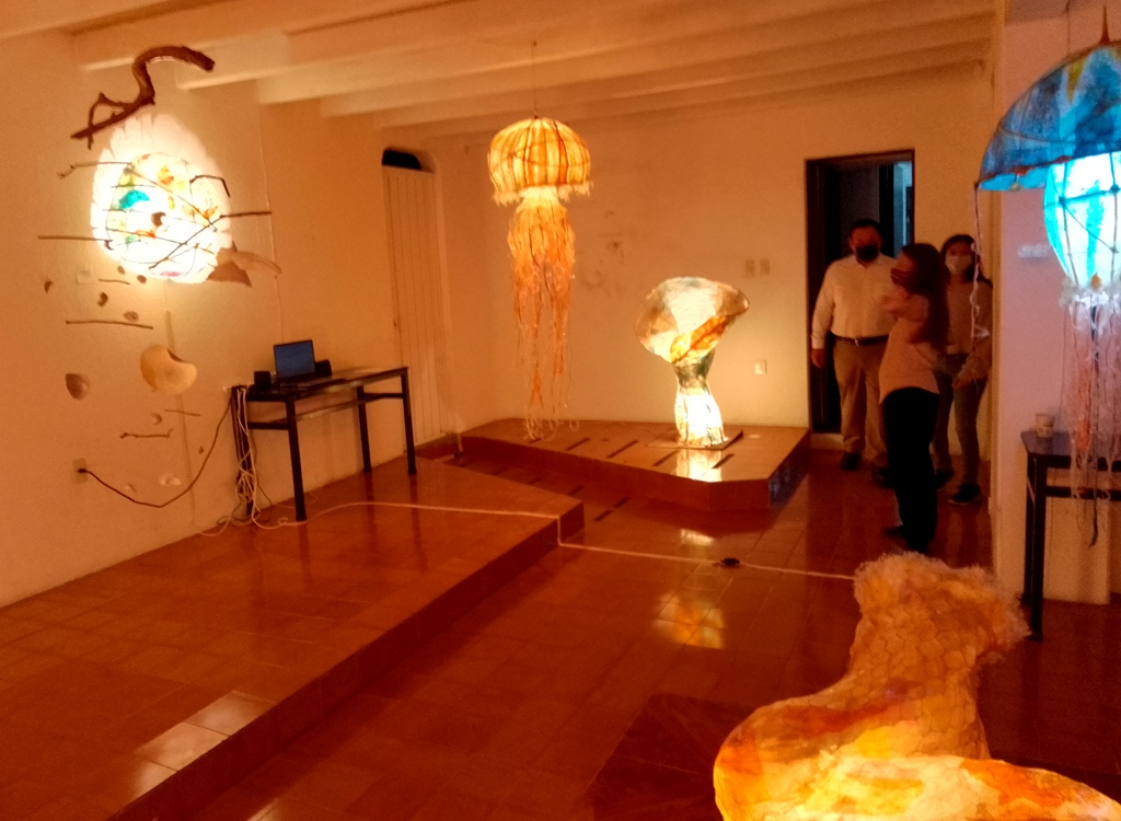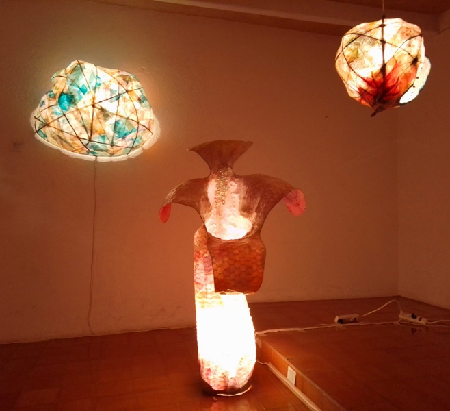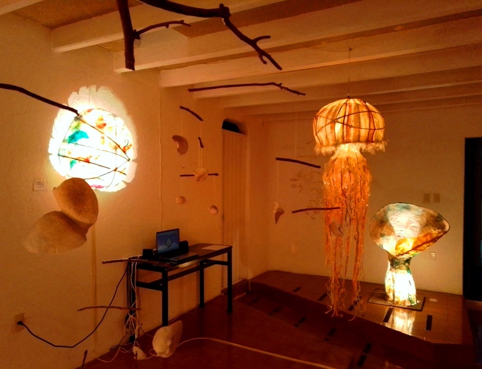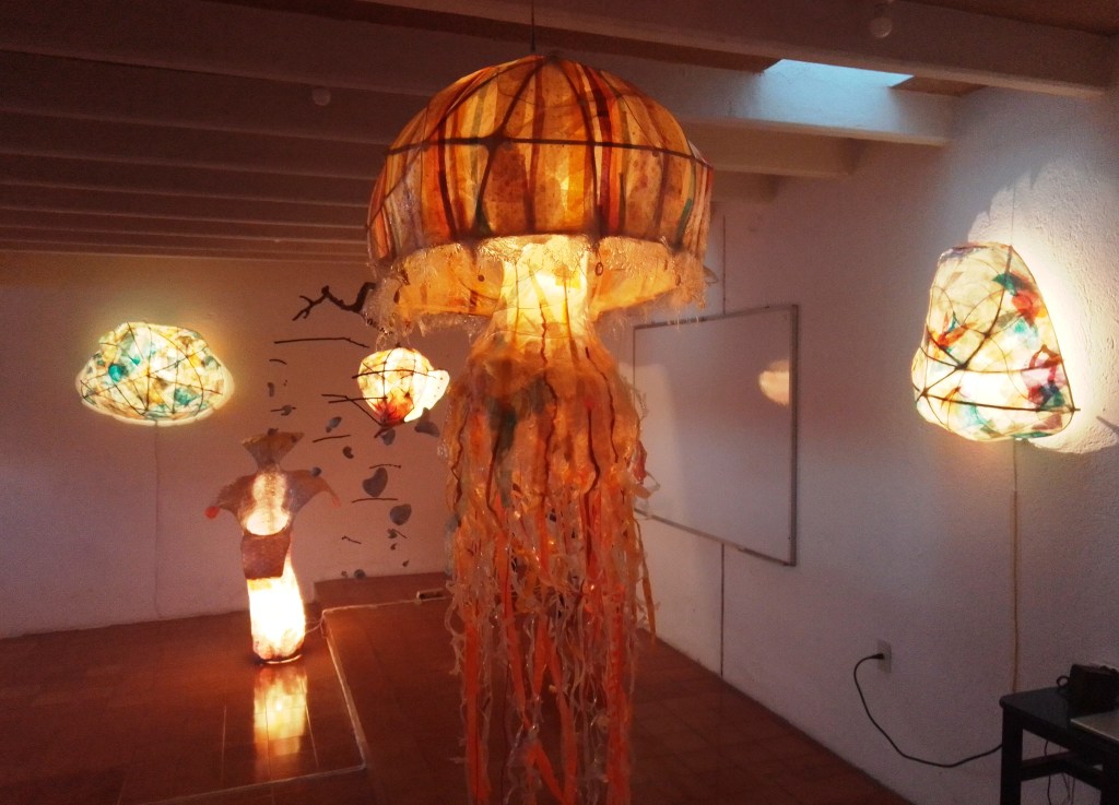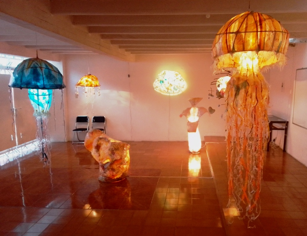 J’ai commencé à m’intéresser aux lampes et installations lumineuses à Zacatecas en 2013. Tout d’abord inspiré par les éléments terrestres et aériens de mon environnement proche (cactus, nuages, le paysage semi-désertique de la région étant déjà fantasmagorique), les éléments marins tels les coquillages, les méduses, les barques, les coraux, les tortues sont devenus progressivement des références à mes Formas de luz. Puis les fleurs et plantes tropicales ou sylvestres, en arrivant à Oaxaca il y a 4 ans.