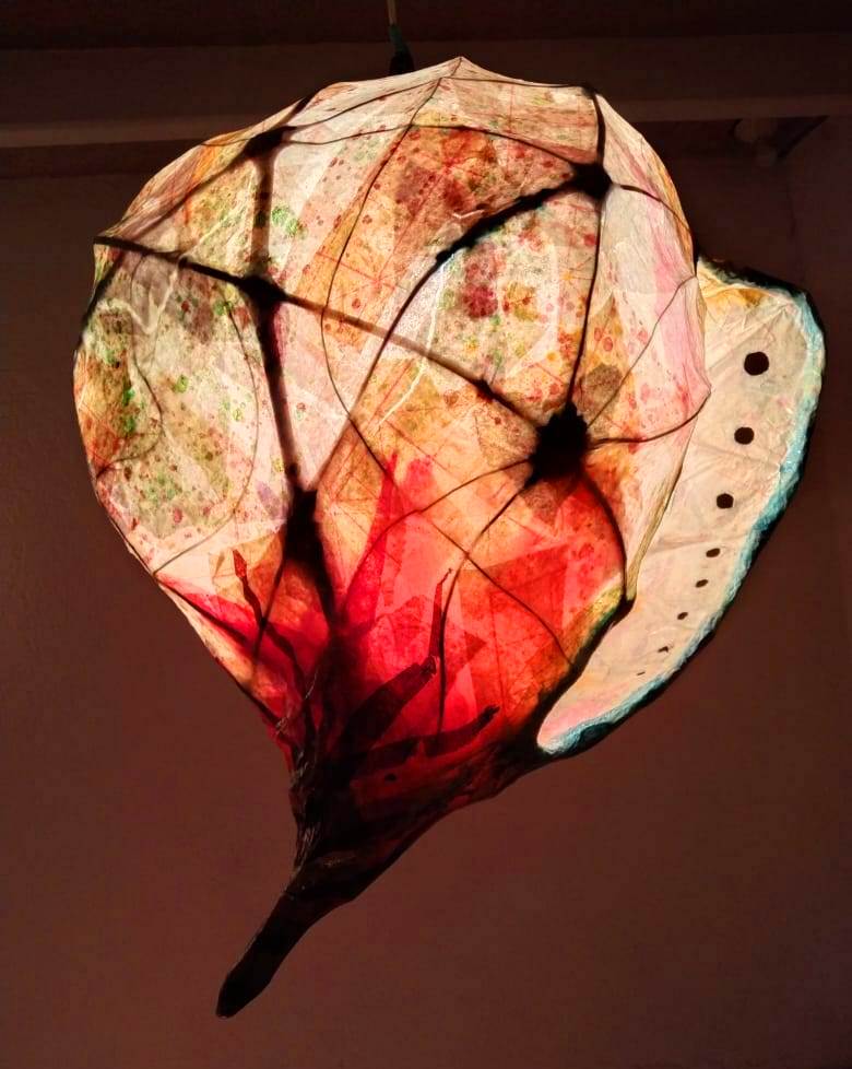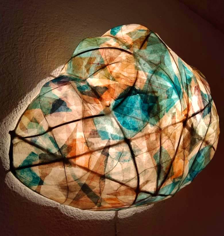 Mes formes de lumière sont les lampes, murales, de pied, suspendues ou de table. Ce sont aussi des sculptures originales, des peintures abstraites et des collages en volume. Elles sont toutes fabriquées avec des matériaux naturels : papier chinois, bambou, fil de fer, colle de pâte naturelle.