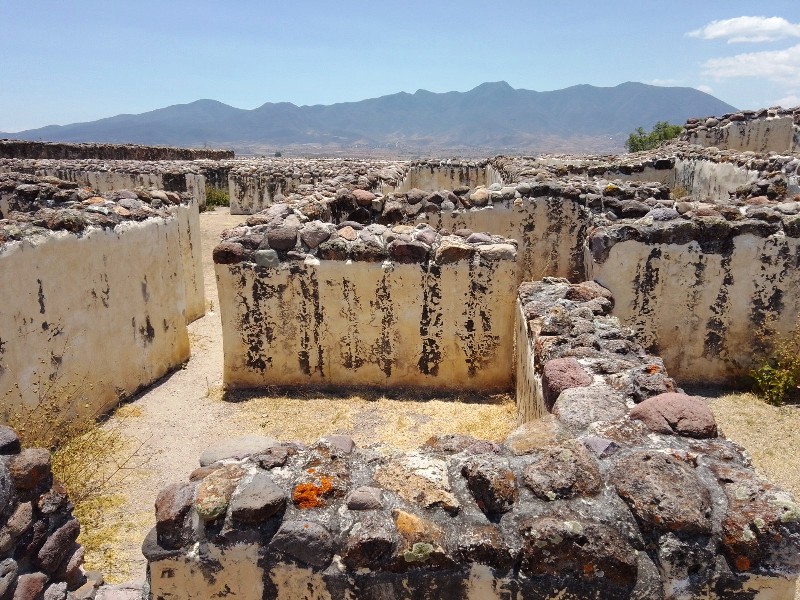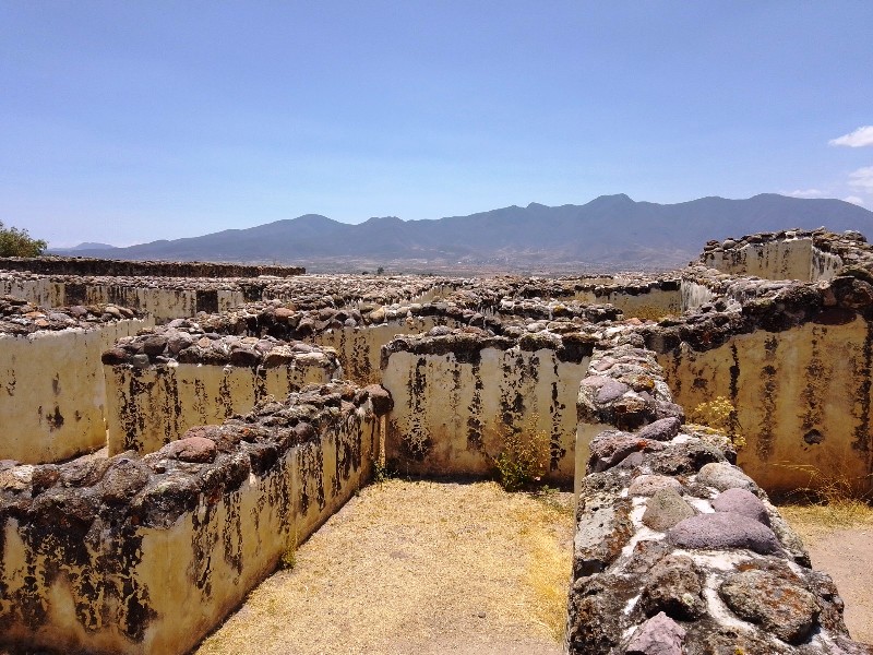 Il y a des endroits qui appellent le respect et apportent la paix de l’âme. C’est le cas du site archéologique de Yagul, peu fréquenté par le tourisme et habité par les Hommes depuis plus de 10 000 ans. Des vagues d’occupation s’y sont succédées depuis les temps archaïques, ont parfois laissé des traces : un ensemble architectural de l’époque dite Monte Alban IV (700 à 1000 après J.C.), des peintures rupestres dans les environs, un parking pour automobiles discret en pierre à l’entrée du petit parcours tout en montées et descentes.