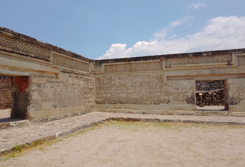 Dans les ensembles du Nord, des Colonnes et de l’Arroyo, se trouvaient les bâtiments administratifs et les palais de personnages de haut rang. Ces palais se caractérisent par l’utilisation architecturale de grands monolithes et par leurs façades ornées de mosaïques de grès de différents dessins encadrés par des panneaux, éléments qui font partie de la riche tradition architecturale zapotèque commencée à Monte Albán avec de fortes influences de Teotihuacan.