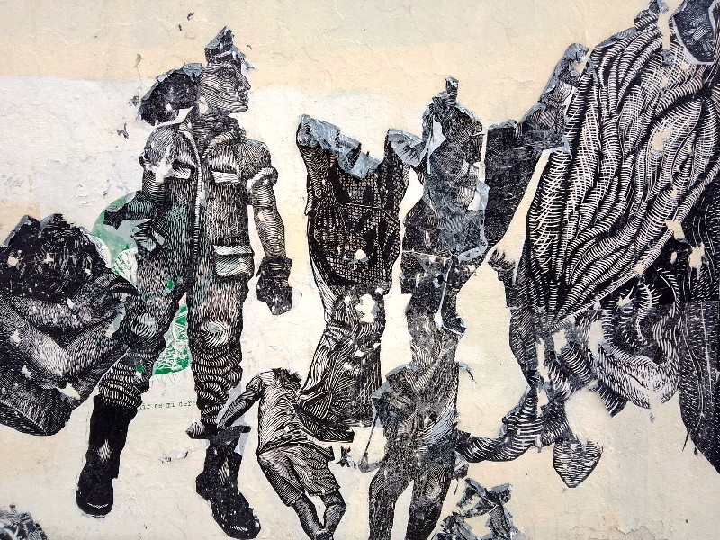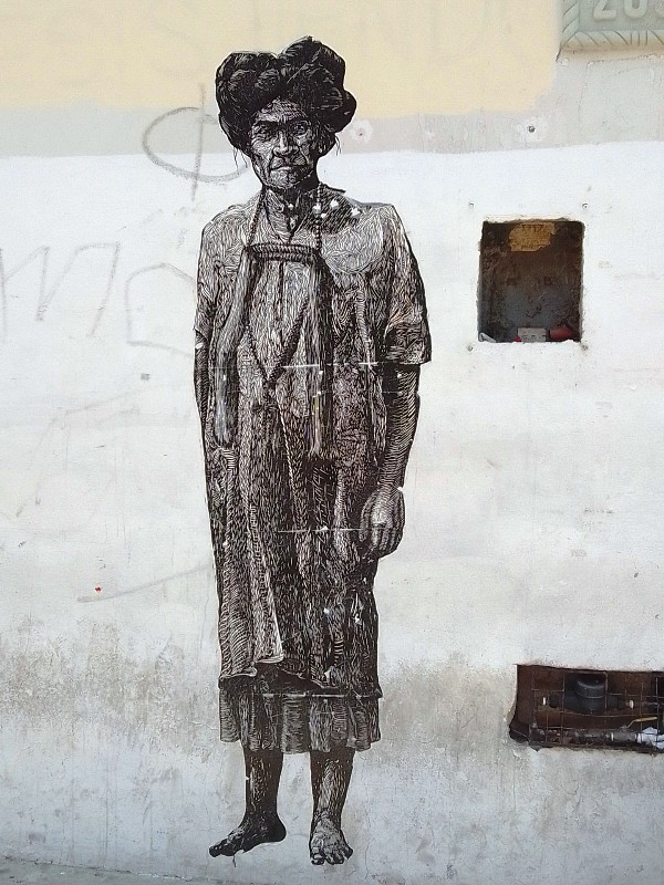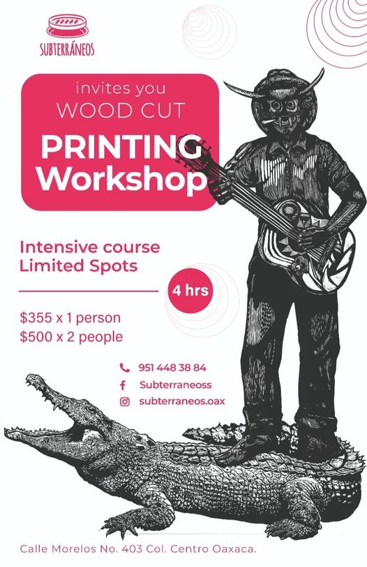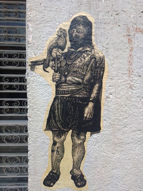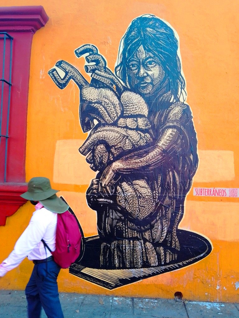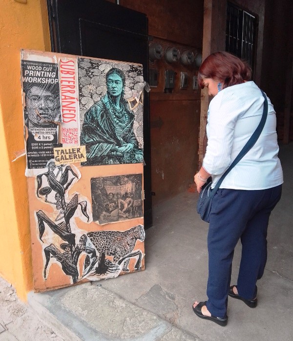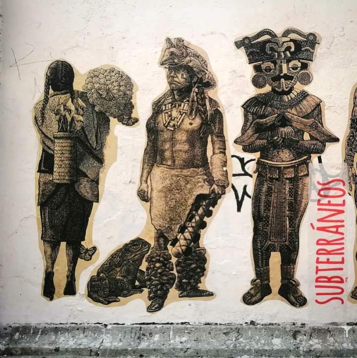 Subterráneos, qui est aussi un collectif, expose publiquement et gratuitement des collages de format moyen à gigantesque, composés de fines gravures faites sur des planches en bois. Ce sont surtout des représentations réalistes de personnages d’inspiration rurale qui se déploient et se dupliquent dans toute la ville – dans le centre historique, objet de beaucoup d’attention touristique et culturelle, mais aussi dans les quartiers résidentiels et populaires éloignés, les villages. Subterráneos propose à la vente aux particuliers la même production vue dans les rues de Oaxaca, mais numérotée et encadrée, dans son espace situé au numéro 403 de la rue Morelos, où sont également organisées continuellement des formations pour les artistes graveurs.