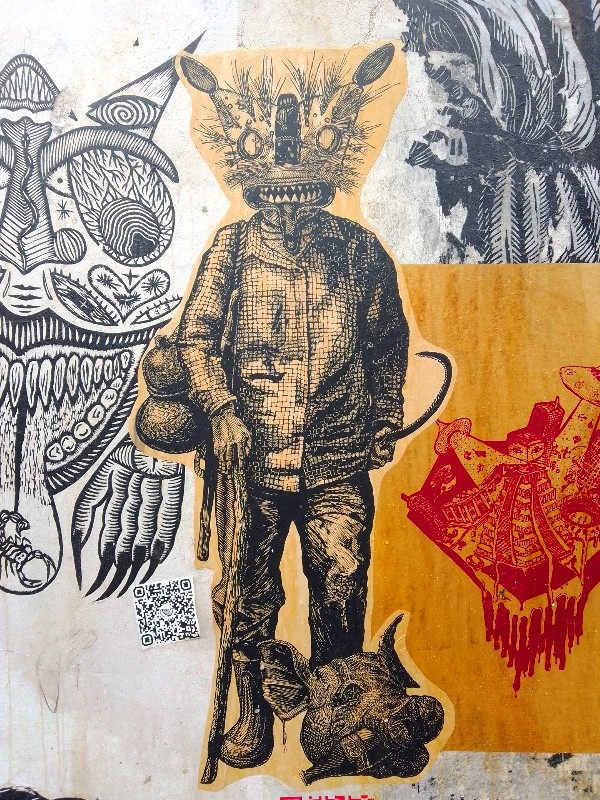 Dans cet effort de visibilité et d’information, durant un moment apparaissait apposé aux gravures sur les murs, le carré d’un QR-code. En le scannant avec son smartphone, on arrivait à une page Internet donnant la liste des œuvres et des détails sur le projet en cours. Comme Subterraneos est en perpétuelle évolution en tant que collectif, cette pratique a été laissée de côté. Preuve qu’il a déjà atteint l’âge de la maturité et un niveau d’excellence, admiré de plus en plus ici et ailleurs, sans avoir besoin des gadgets du Web ? On le souhaite vivement à Mario, pour le talent et les efforts qu’il a déployé jusquà présent à Oaxaca, même s’il affirme qu’il n’attend et ne cherche rien au niveau institutionnel et officiel.