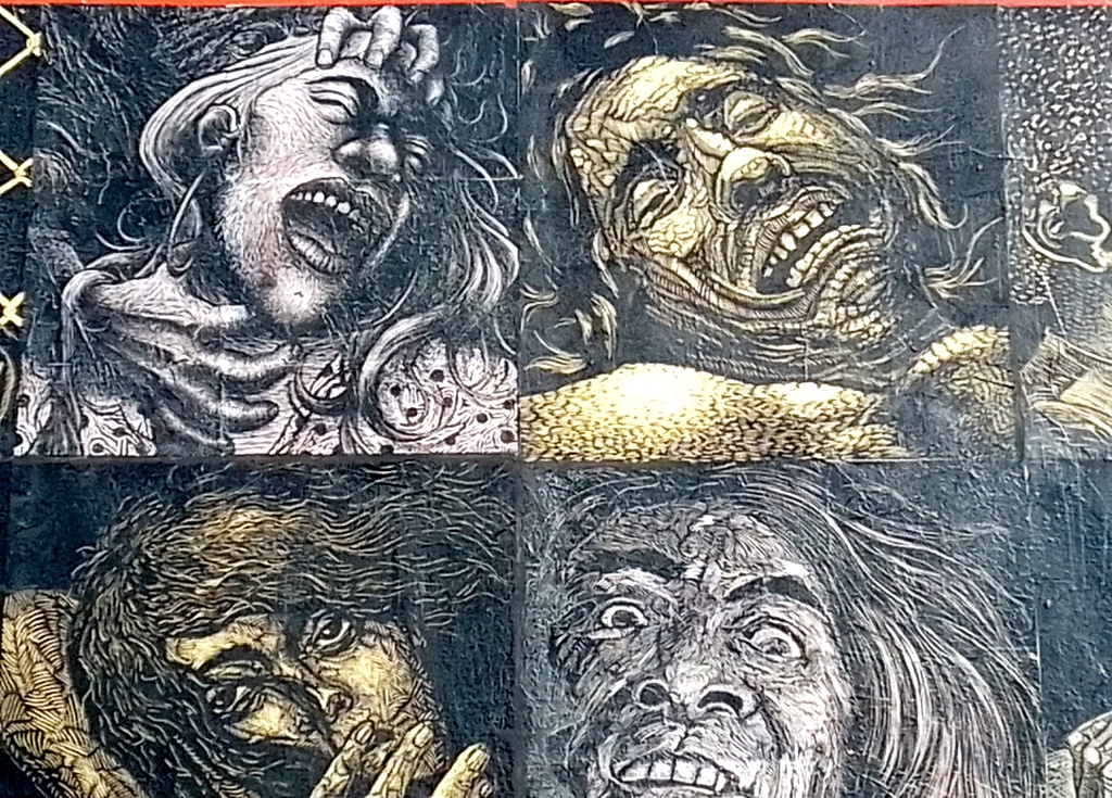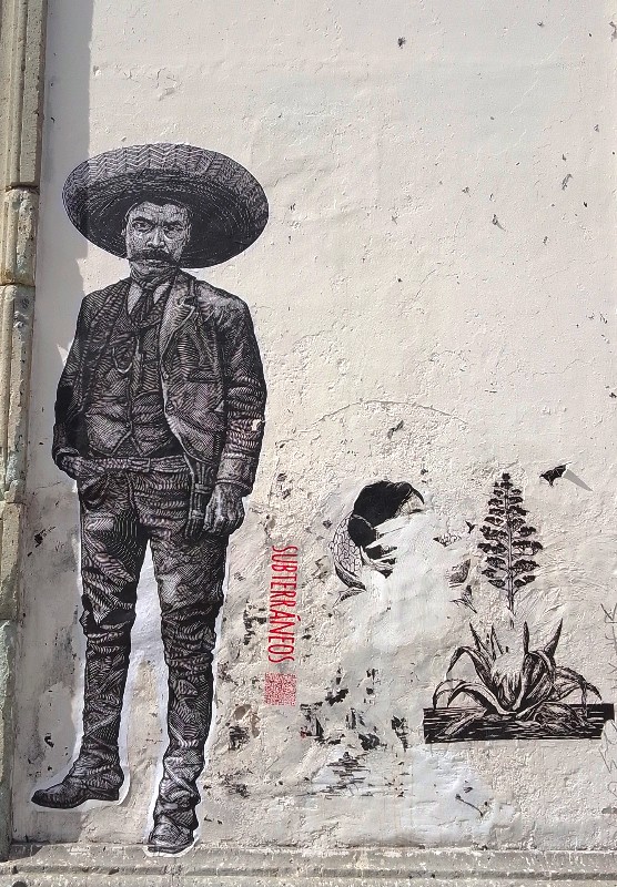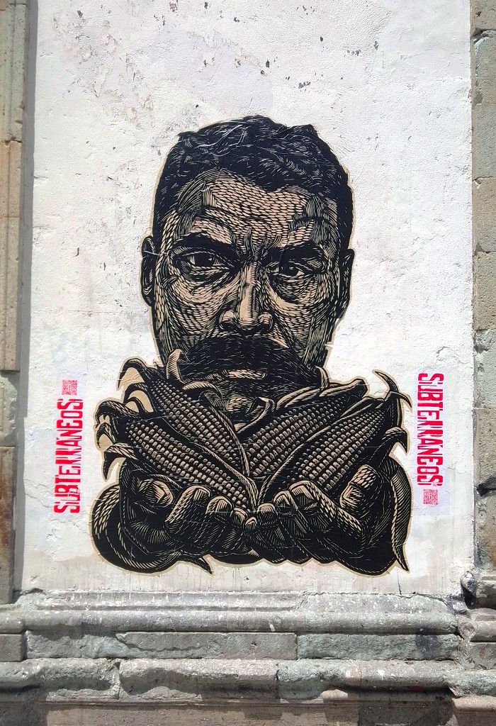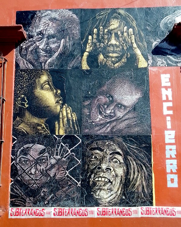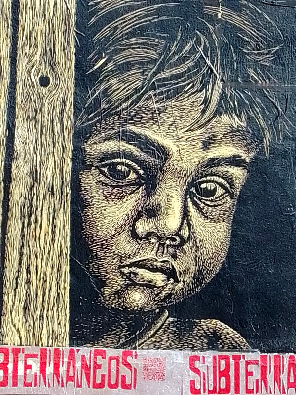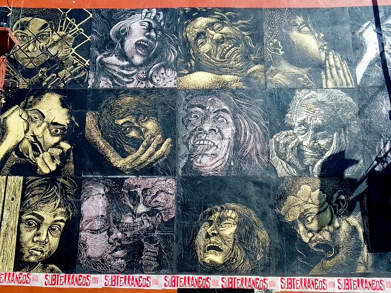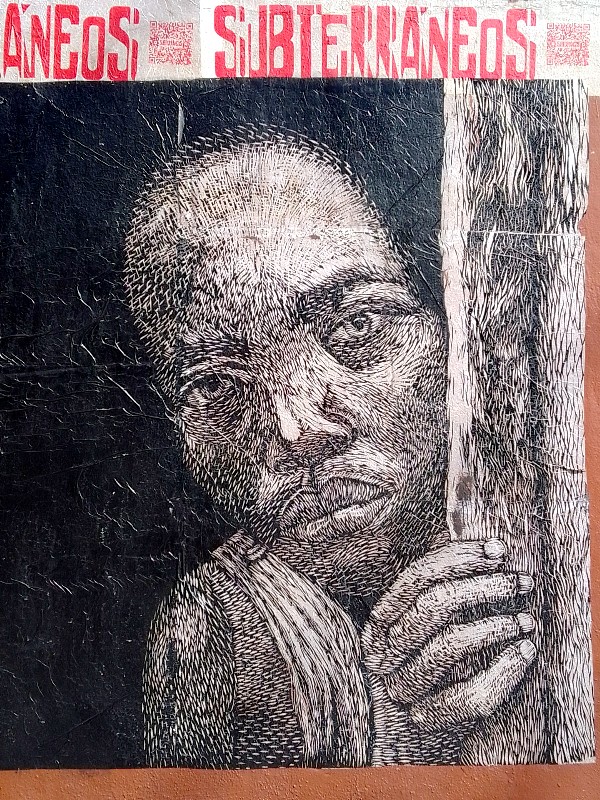 Subterráneos, que es también un colectivo, expone públicamente y gratuitamente collages de formato medio a gigantesco, compuestos de finos grabados sobre tablas de madera. Son sobre todo representaciones realistas de personajes de inspiración rural que se despliegan y se duplican en toda la ciudad – en el centro histórico, objeto de mucha atención turística y cultural, sino también en los barrios residenciales y populares distantes, pueblos. Subterráneos propone a la venta a particulares la misma producción vista en las calles de Oaxaca, pero numerada y enmarcada, en su espacio ubicado en el número 403 de la calle Morelos, donde también se organizan continuamente formaciones para artistas grabadores.