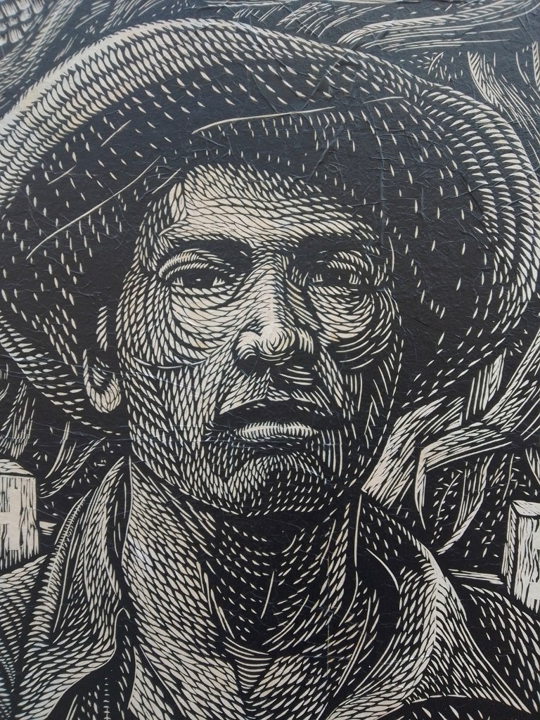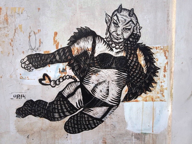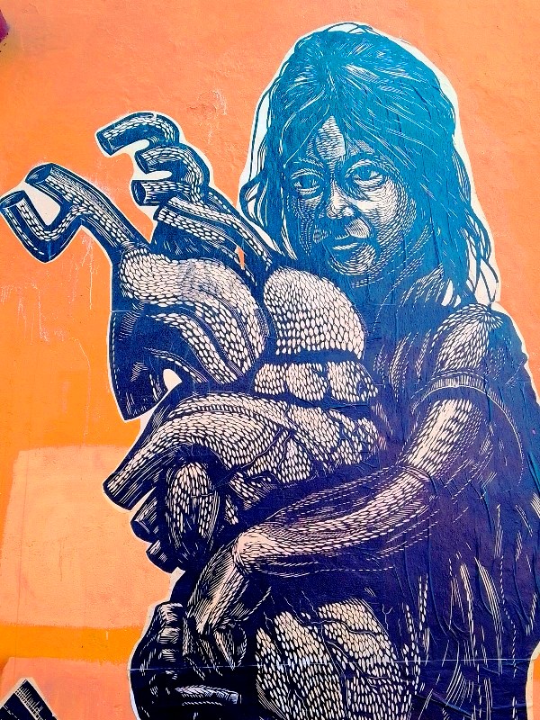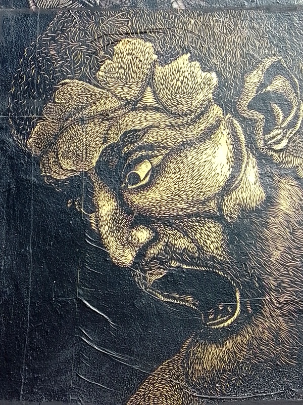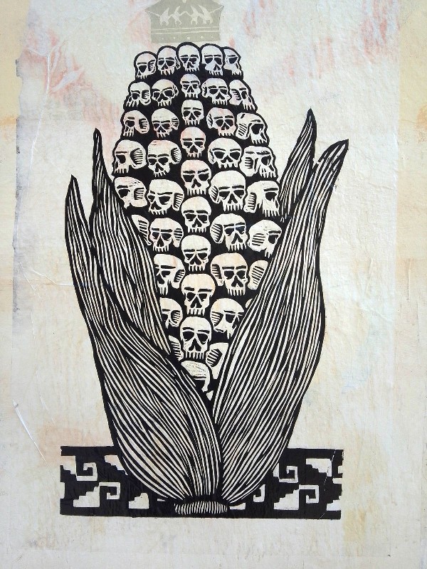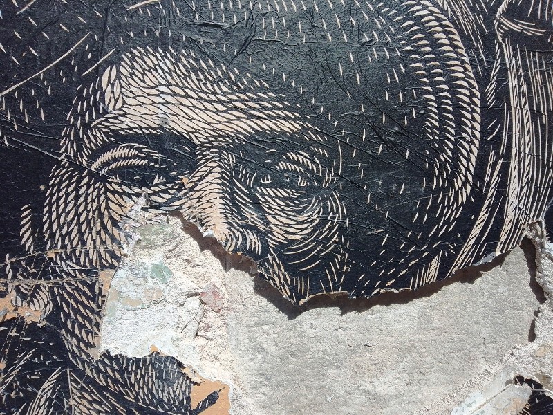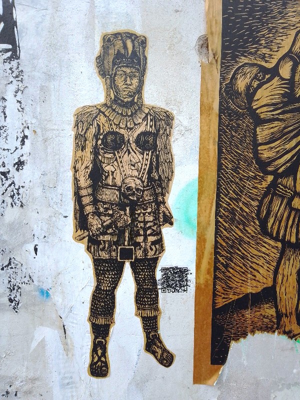 Desde hace 4 años, lapartmanquante sigue con mucho interés la generosa producción que nos ofrece el taller de grabado Subterráneos, al ritmo de sus exposiciones urbanas temáticas. Varias publicaciones de arte callejero en Oaxaca en este blog están ilustradas por obras monocromáticas, en blanco y negro, impresas exclusivamente en papel blanco o café, a veces rojo-anaranjado, procedentes de este taller. Esta forma de exposición en la calle, en las paredes de edificios coloniales o modernos es obviamente efímera debido a su exposición a la lluvia y al sol, al viento, a diferencia de los frescos murales pintados, lo que a veces da la impresión de una piel que se despega de las fachadas, de diferentes capas gráficas que se superponen, se borran y se recomponen, el sentimiento de una ciudad palimpsesto.