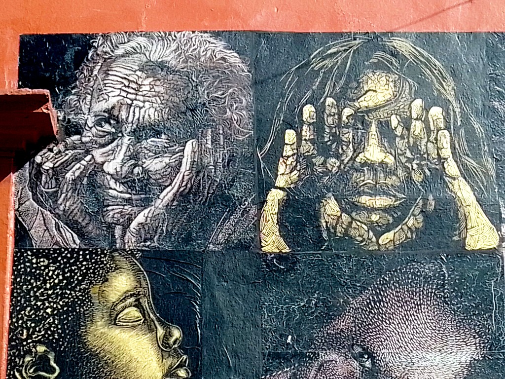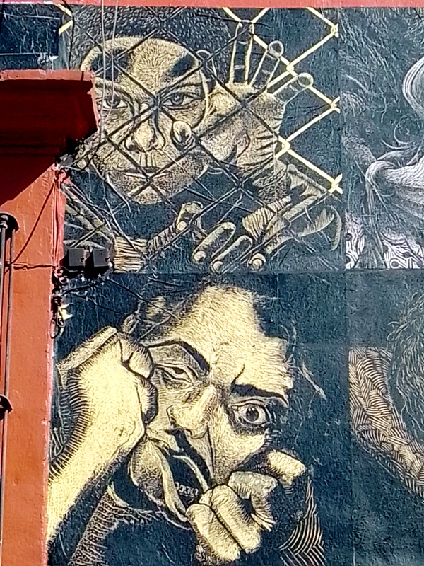Por ejemplo, la obra monumental Diáspora negra, 500 años de esclavitud. Esta obra, de acuerdo con el propietario del edificio, se hizo de día en 10 horas, de mediodía a 20 horas, con un pequeño grupo de artistas voluntarios. Fue el primer proyecto y luego obra del colectivo (ver más aca). Igualmente en la fachada vecina de Toro, ubicada calle Morelos, donde durante un año se pudo admirar retratos ilustrando diferentes caracteres y emociones como la ira, la locura, la esperanza, el miedo (diaporama más abajo)… Pero en general, después de una llamada a la participación dentro del colectivo, la exhibición se hace sin pedir permiso, más bien de noche.