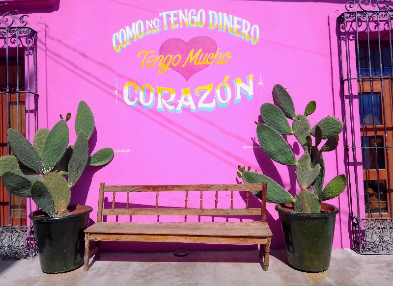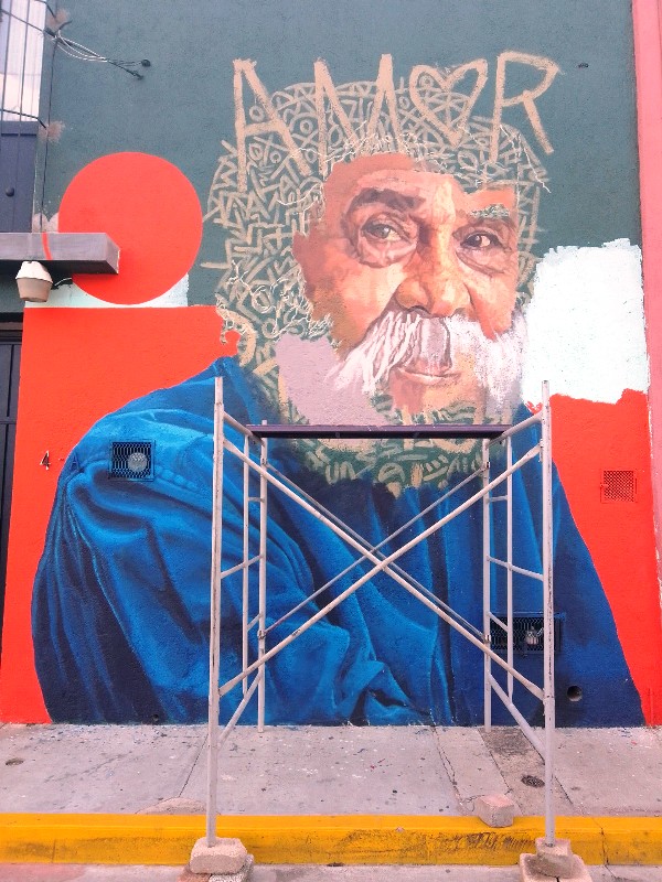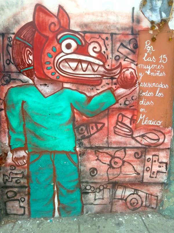 Malgré tout, on peut encore voir dans les rues de la ville un hommage de Toledo, principal acteur de la belle époque culturelle à Oaxaca, et dont les efforts ont fini complètement instrumentalisés par l’indusrie touriristico-immobilière. C’est une période définitivement révolue depuis son décès en 2020, juste avant la coronafolie à Oaxaca et les décisions souterraines de privatiser complètement la zone coloniale (il aura au moins échappé à cela).