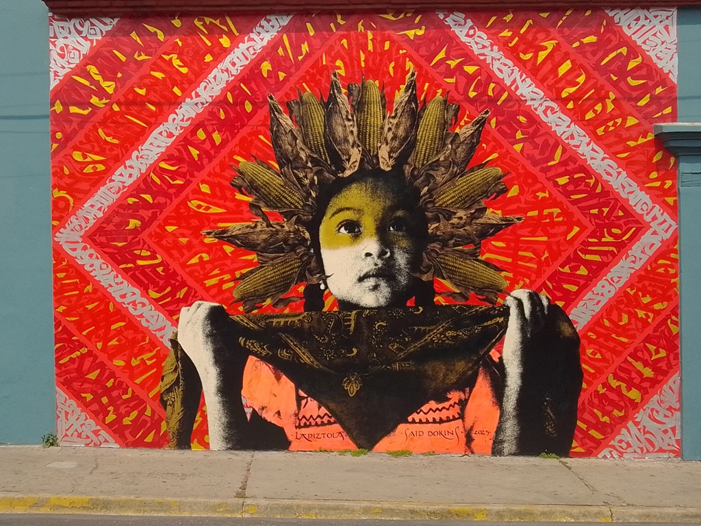 Fresque murale, impression couleur numérique, papier collé – Lapiztola / Said Dokins – Oaxaca 2023
