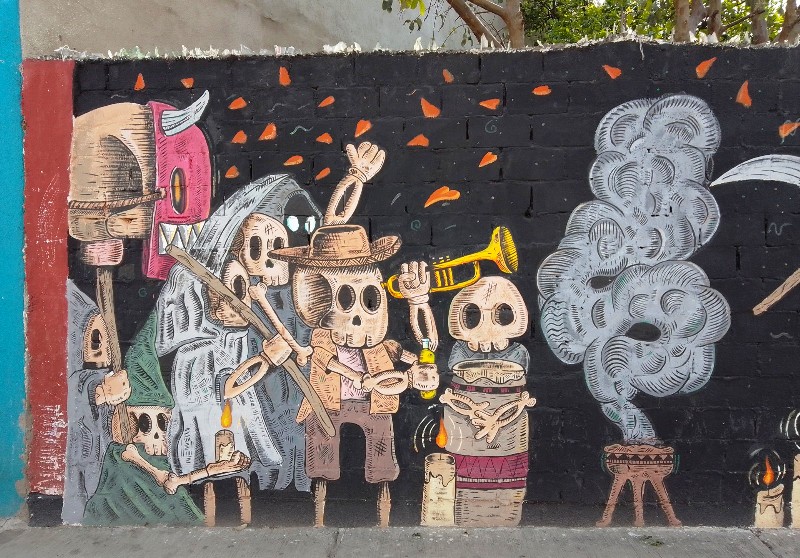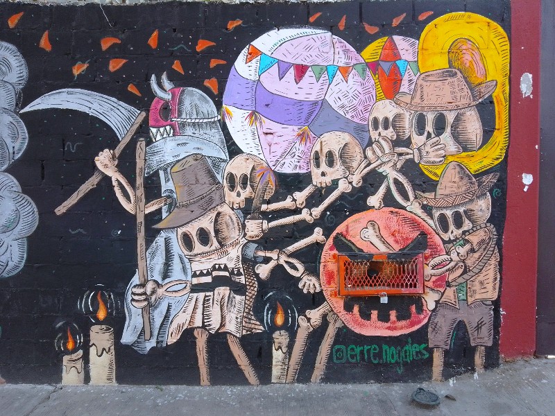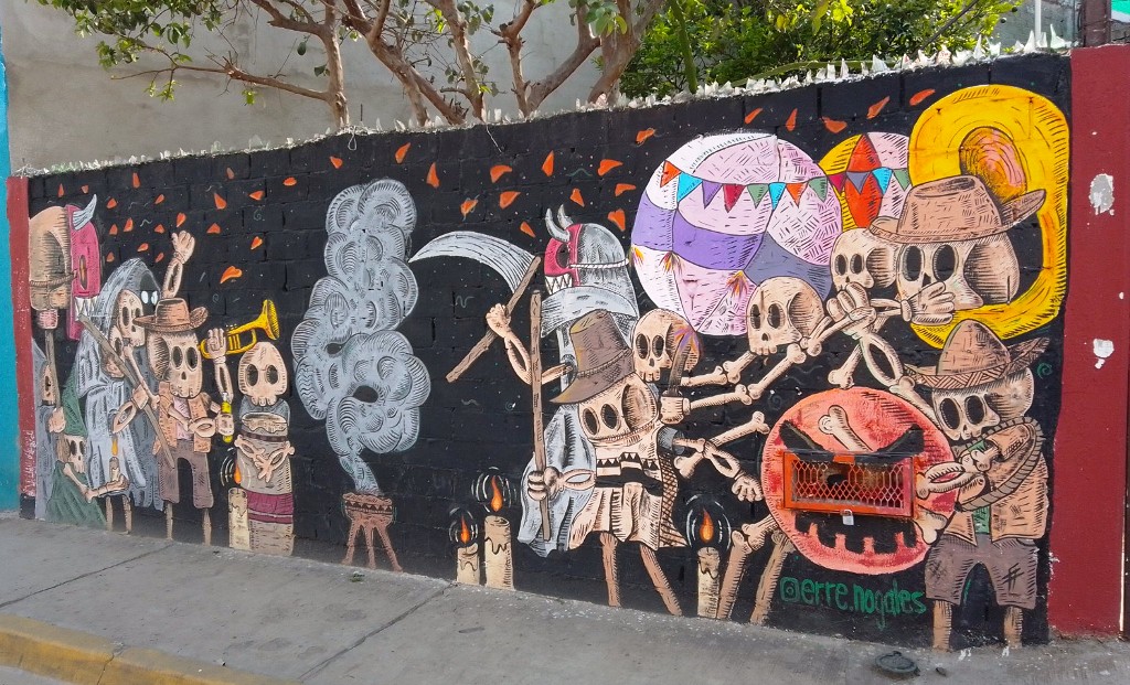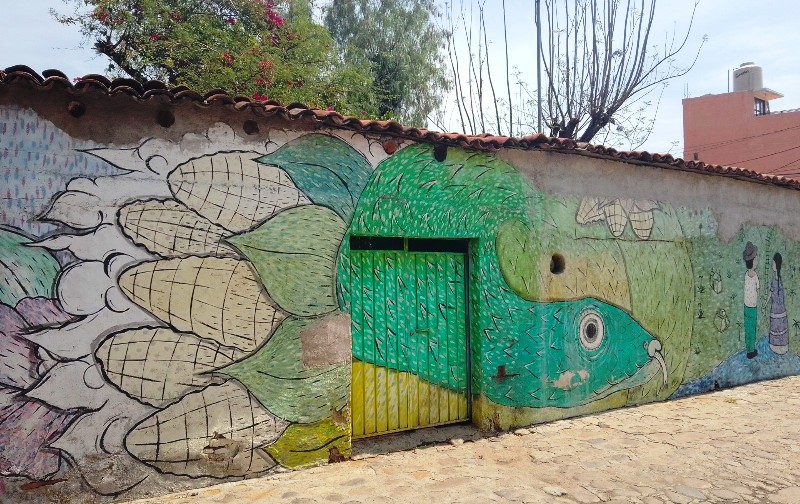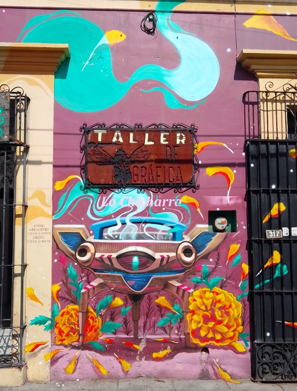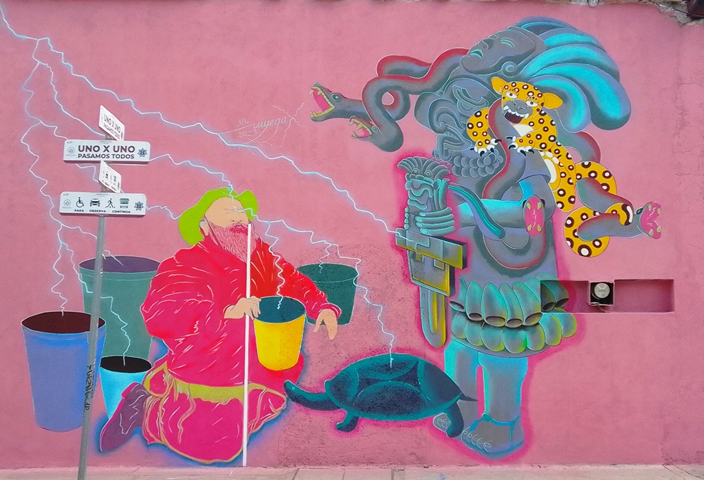 Toujours beaucoup de créativité et de sujets parmi les œuvres sélectionnées ici. Certaines n’ont aucune profondeur ni message à porter, sinon la résistance pour une libre expression dans la rue, mais aussi la promotion de l’artiste ou du collectif. On note que de plus en plus de fresques ont des thèmes consensuels qui ne bousculerons ni le bourgeois capitaliste, ni le touriste en demande de spectaculaire, deux acteurs (souvent les mêmes) de la globalisation culturelle et de la standardisation politico-sociale en cours à Oaxaca, avec un fort tropisme nord-américain. Cela se manifeste par une critique sociale euphémisée ou inexistante, un hygiénisme de la pensée allant jusqu’à l’occultation de thèmes et images jugées dérangeantes. Un phénomène qui ne vient pas seulement d’une pression extérieure, mais aussi d’une forme d’autocensure de l’artiste afin d’arriver plus facilement à la reconnaissance et à la célébrité via Tik-Tok, Instagram ou Facebook.