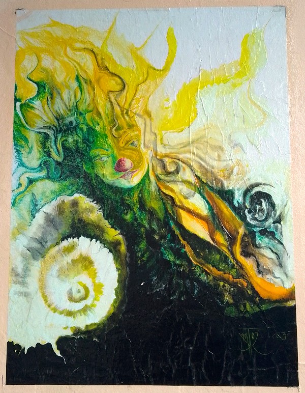 Obra del Maestro George S. Barahona – Técnica : lápiz de cera y acrílico