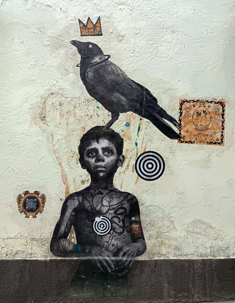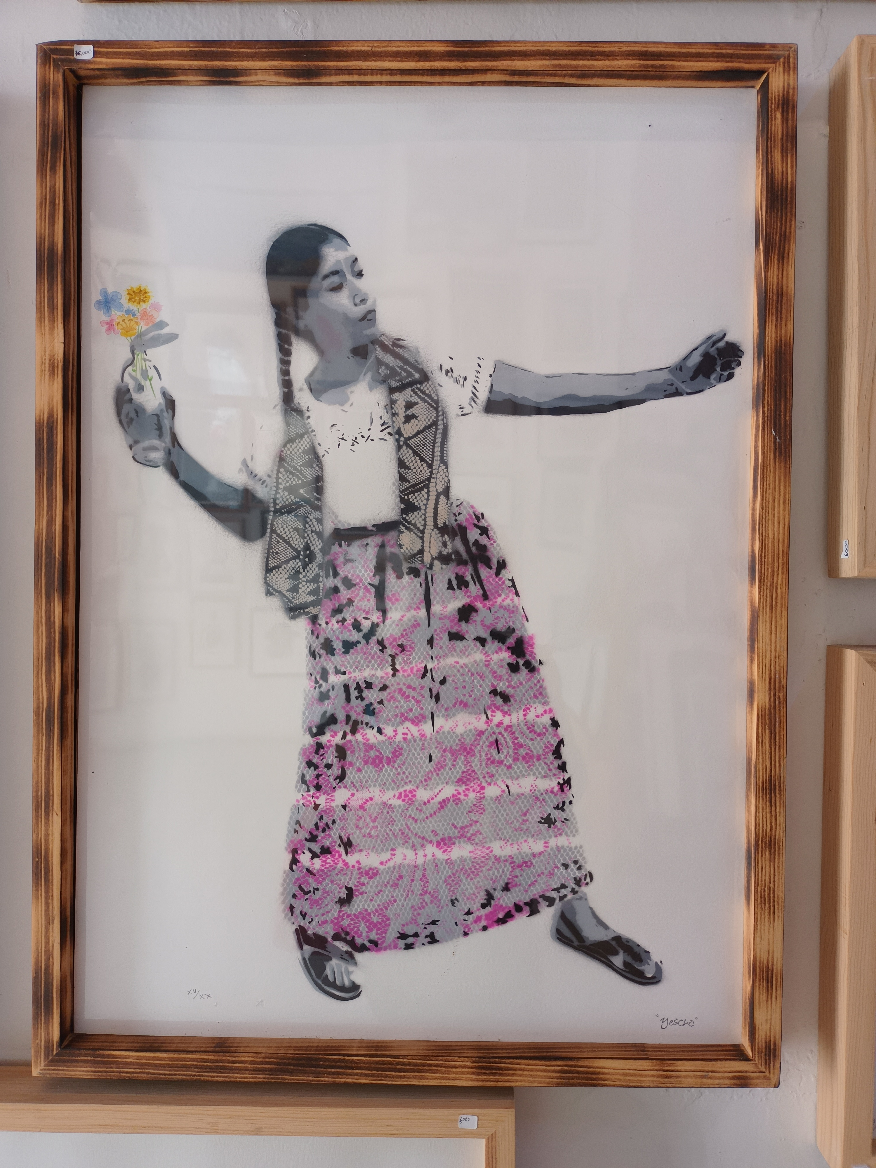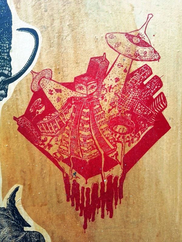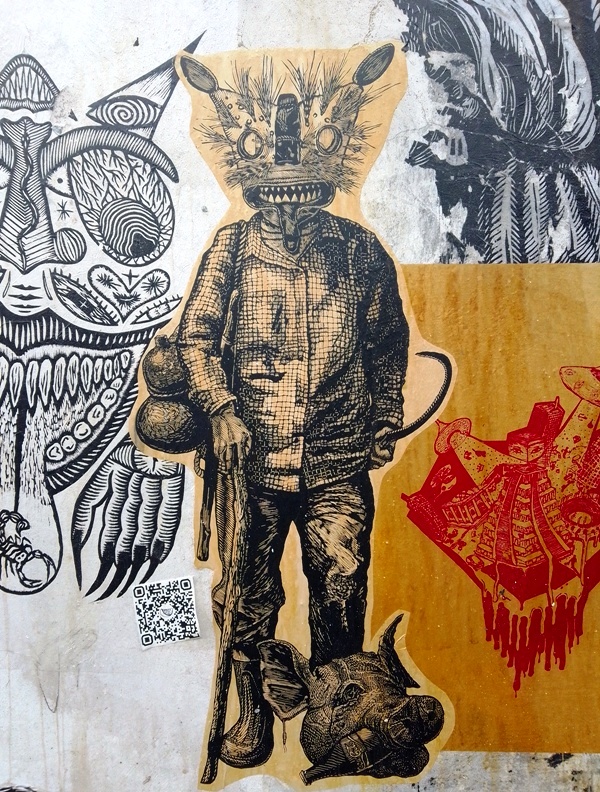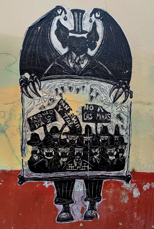 Dernier tour de piste avant décollage… Voici quelques œuvres graphiques, pour la plupart des gravures sélectionnées parmi celles, nombreuses, collées sur les murs du centre historique de Oaxaca. Certaines pourraient rejoindre l’article Une goutte de mezcal… mais pour raison de fin d’inventaire artistique, je regroupe ici les ultimes œuvres qui ont attiré mon attention dans la rue ainsi que dans quelques galeries d’art du centre historico-touristique. Ce sera l’occasion de constituer une liste non exhaustive de lieux où l’on peut revoir mais aussi acheter la plupart de ces remarquables propositions graphiques.