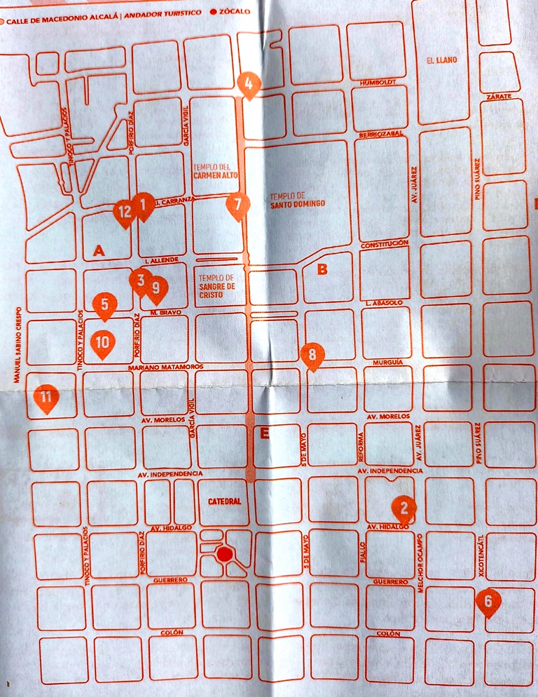 Plan du centre-ville historique de Oaxaca avec localisation des 12 galeries