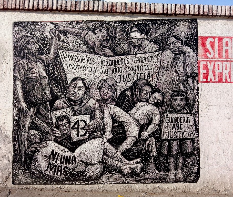 Il s’agit surtout des articles publiés sur ce même blog présentant Nando Lelo à Zaachitla pour le collectif ZAANARTE, l’école de peinture murales de Jesús González Gutiérrez située dans l’Espace artistique Xicotencatl et Mario Guzmán pour le collectif Subterraneos. Le peu de retour, voire le total manque de réaction de ces trois personnes interviewées dans le cadre d’un travail bénévole, gratuit et collaboratif est malheureusement emblématique de l’attitude de nombreux artistes de Oaxaca, qu’ils soient issus de la mouvance street art ou plus largement des arts plastiques. Il m’est arrivé la même déconvenue avec la peintre Sigrid Wiese pour laquelle possiblement le peu de notoriété de mon blog (merci les nouveaux algorithmes Google) ne méritait pas un peu de son temps ni de son attention.